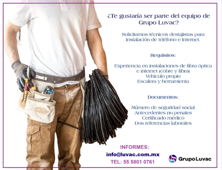 Somos una empresa de facilita servicios de infraestructura y mantenimiento a las grandes corporaciones de Telecomunicaciones. ​Fomentamos el crecimiento de las personas que hacen de Grupo Luvac Logistics un mejor lugar para trabajar. En este sentido, diseñamos una propuesta de valor con un conjunto integrado de servicios, beneficios, instancias de desarrollo, reconocimiento, aprendizaje e innovación, para atraer y retener el capital humano que valoramos.